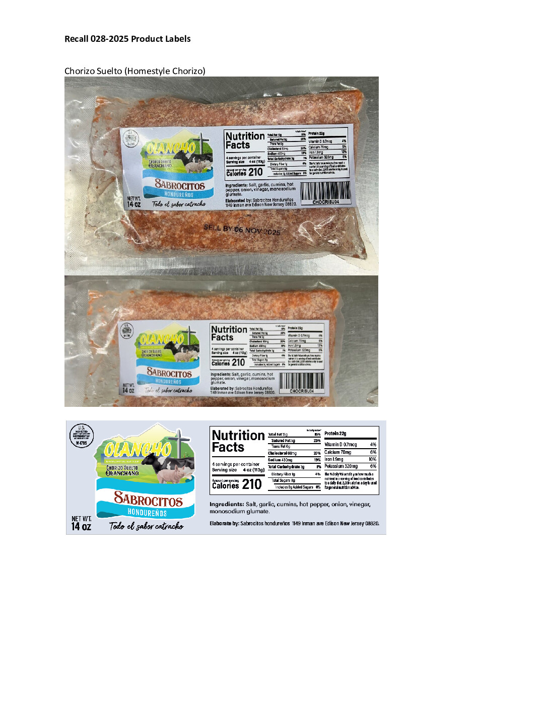 WASHINGTON, Aug. 20, 2025 – Sabrositos Hondurenos, LLC, in Edison, N.J., is recalling approximately 32,000 pounds of various meat products that were produced without the benefit of federal inspection bearing labels with a false USDA mark of inspection, the U.S. Department of Agriculture’s Food Safety and Inspection Service (FSIS) announced today. As more information becomes available, FSIS may update the product list and labels with additional items. Any product bearing the false establishment number “Est. 1785” should be considered misbranded and unsafe to eat.